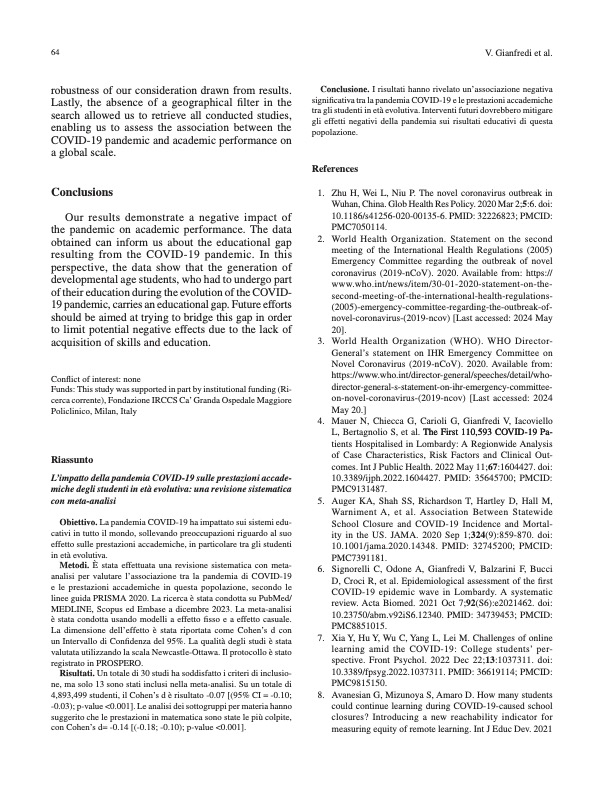 • The impact of the COVID-19 pandemic on academic performance among developmental age students: a systematic review with meta- analysis