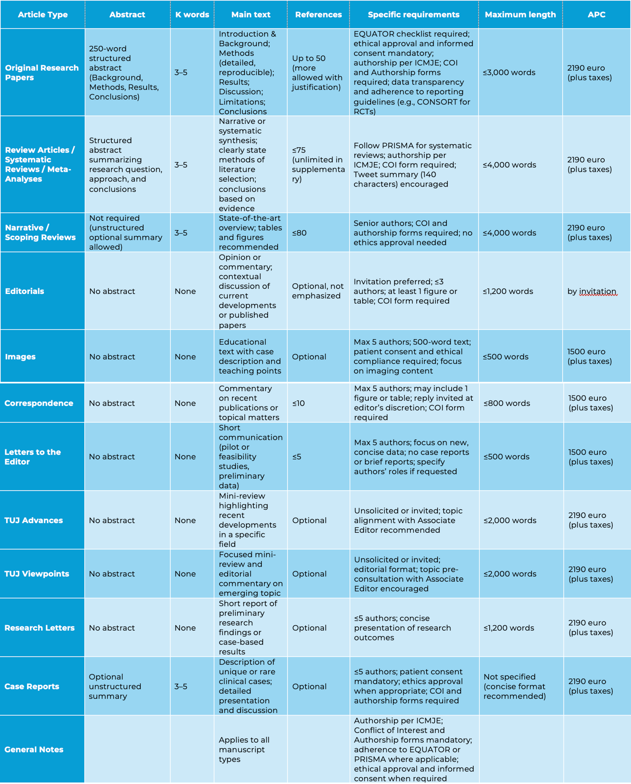Authors who publish open access in The Ultrasound Journal are required to pay an article processing charge (APC). The APC price will be determined from the date on which the article is accepted for publication.