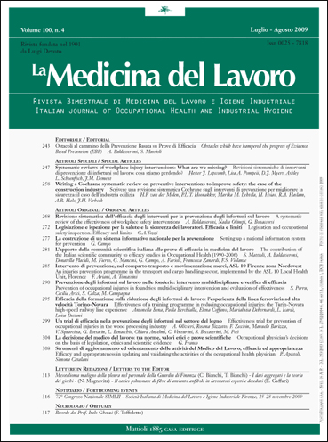Redazione L. 72° Congresso Nazionale SIMLII – Società Italiana di Medicina del Lavoro e Igiene Industriale Firenze, 25-28 novembre 2009. Med Lav [Internet]. 2009 Jul. 1 [cited 2025 Dec. 19];100(4):316. Available from: https://www.mattioli1885journals.com/index.php/lamedicinadellavoro/article/view/1564